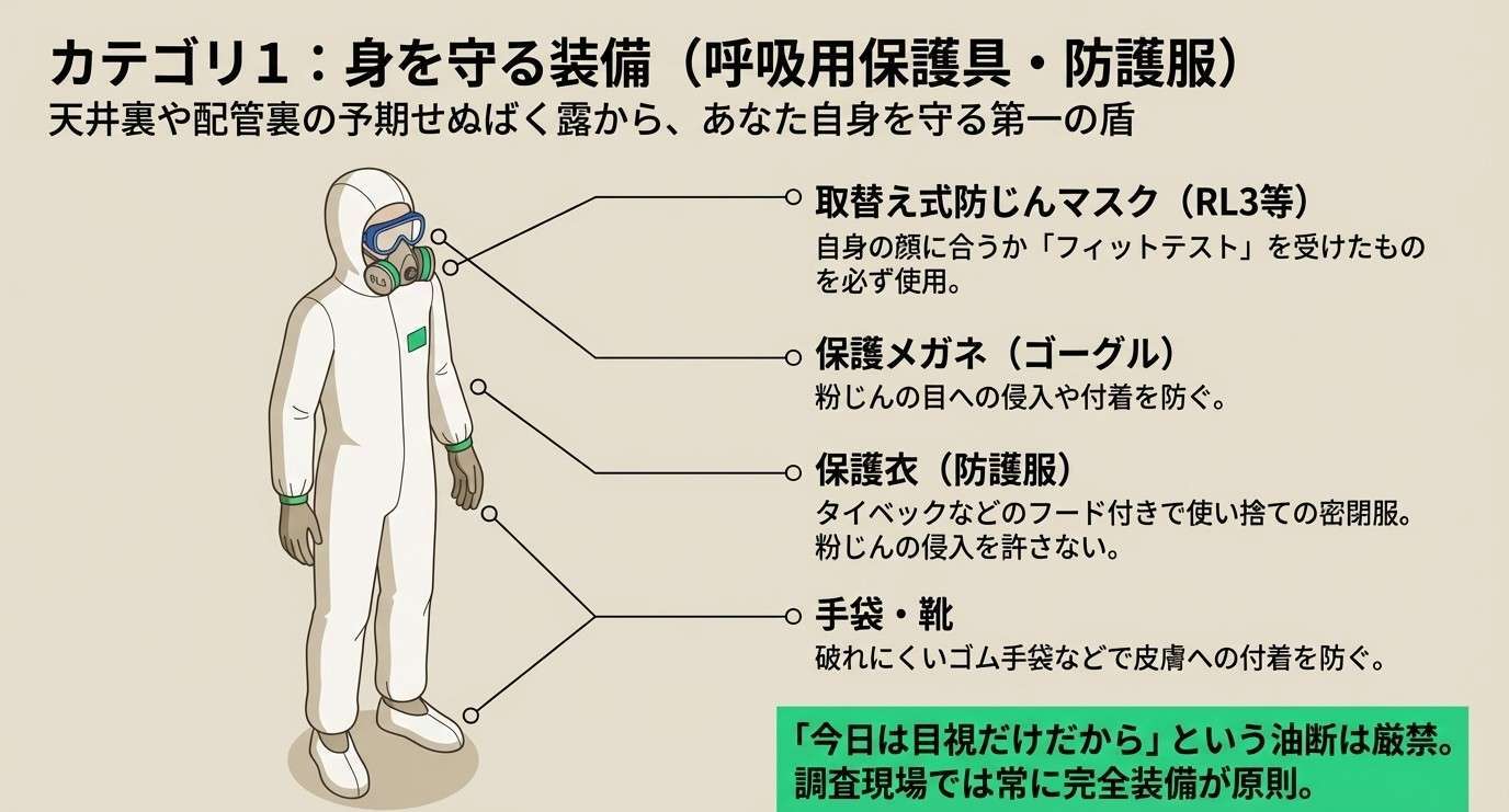 適切な道具選びは、あなた自身の身を守り、重大な法令違反や調査漏れを防ぐための「第一歩」です。
